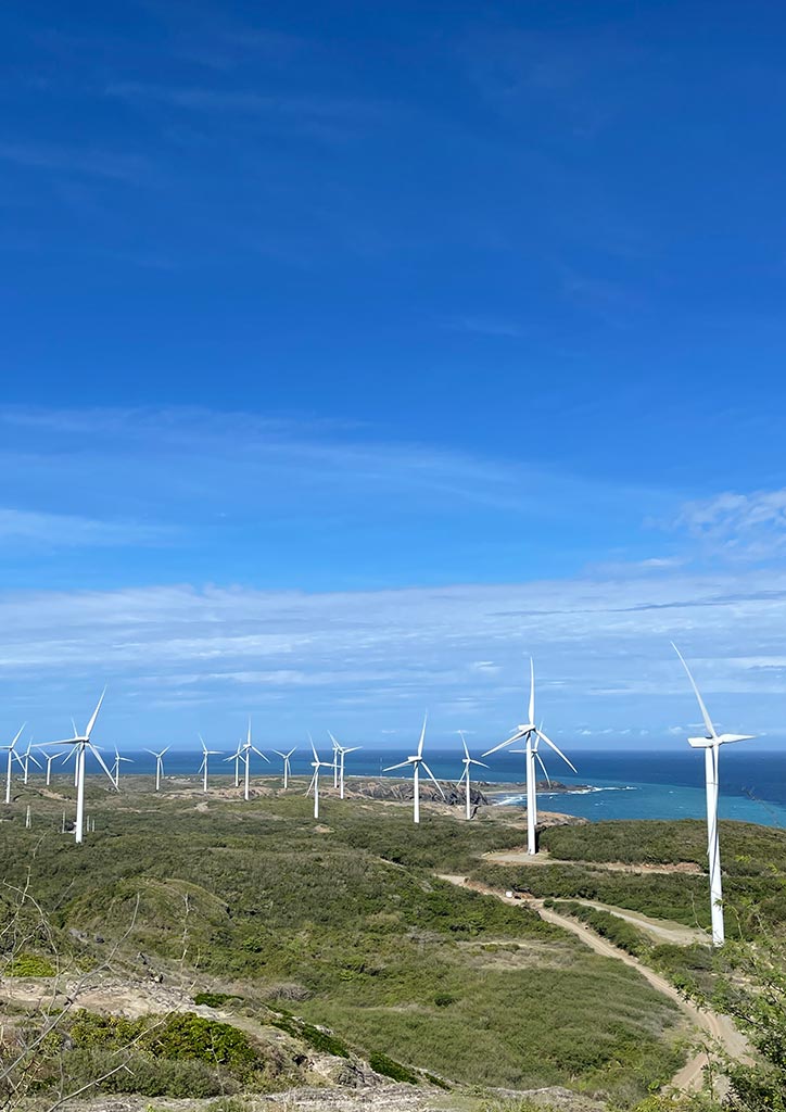 We went to Bangui wind farm. It supplies electricity not just to the province, but also to Metro Manila and other parts of Luzon. It is the biggest wind farm in the Phillipines. There are a total of 52 windmills already operational in Ilocos Norte, according to local officials. What an arresting site to see so much windmills with a backdrop of the clear blue waters of the coastline.