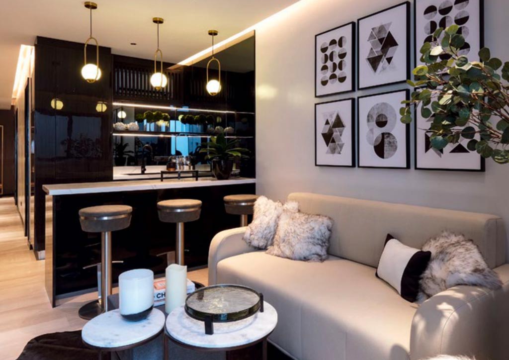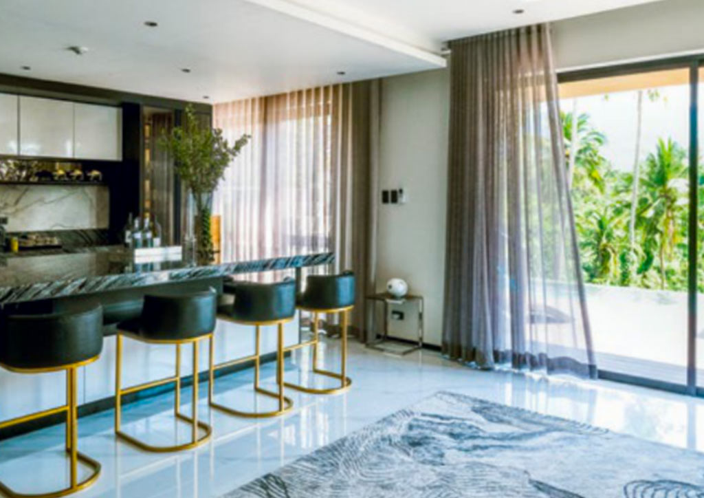 With an aesthetic she describes, the home is a contemporary luxury with a touch of modern Filipino detail, and is also outfitted by installation artist Jinggoy Buencuseo’s piece “Soar High.”