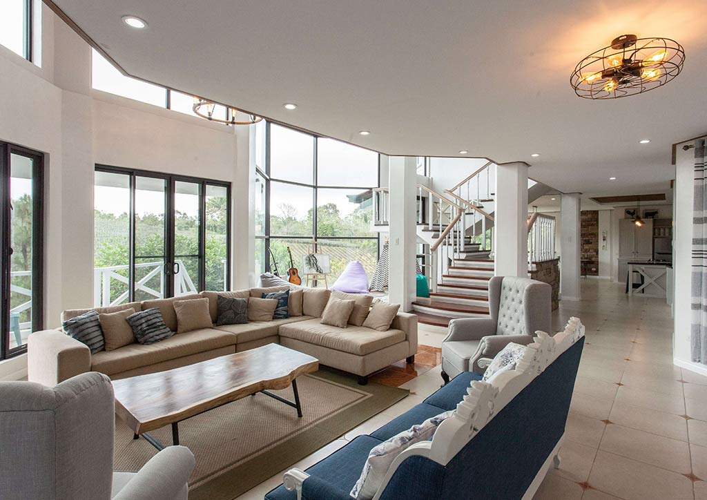 Fancy waking up to a sprawling pineapple farm surrounded by greenery? This farmhouse fits the bill. It also features a four-foot swimming pool, a patio, and a private garden.