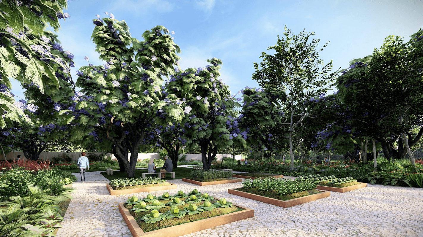 This includes the Color Gardens (inspired by chromatherapy), which features vibrant and colorful trees, as well as alleys with beautiful flowers. There’s also the Garden of Tranquility with a reflection lawn and an open lawn, as well as herb and vegetable plots. The property also boasts Edible Gardens, which come with fruit-bearing trees, picnic tables, and play structures. The Aromatherapy Garden provides a tranquil space for yoga and meditation with its platforms, aromatic plants, and picnic areas. Then there are the Fitness and Activity Gardens, which come with outdoor fitness equipment, fitness pods and stations, more open lawn areas, a picnic shelter, a basketball court, and additional play structures.
