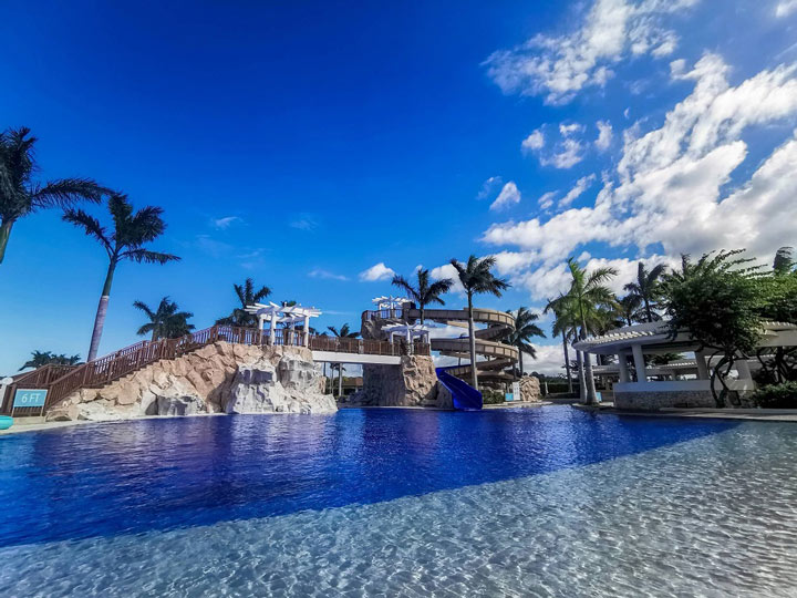 In terms of water amenities, the highlights include Aquaria, a water park with a three-level pool slide at CaSoBē and the Beach Club at Club Laiya.