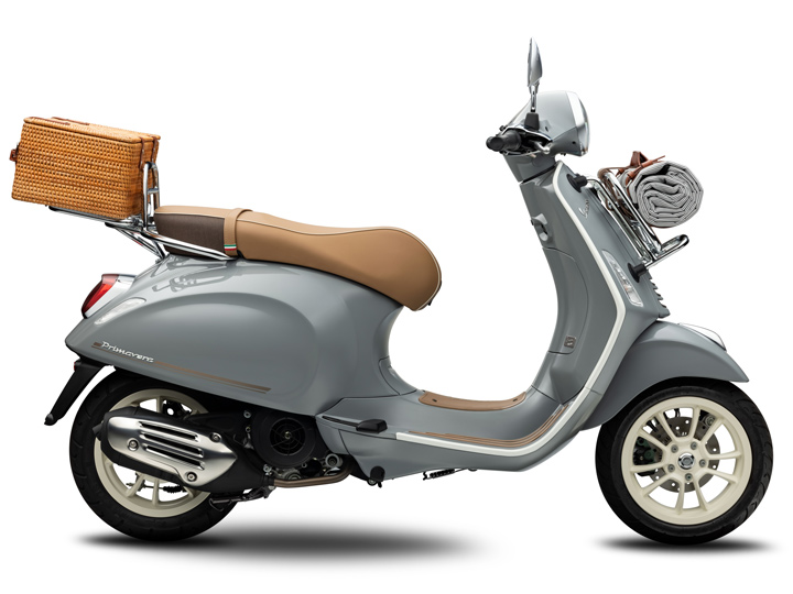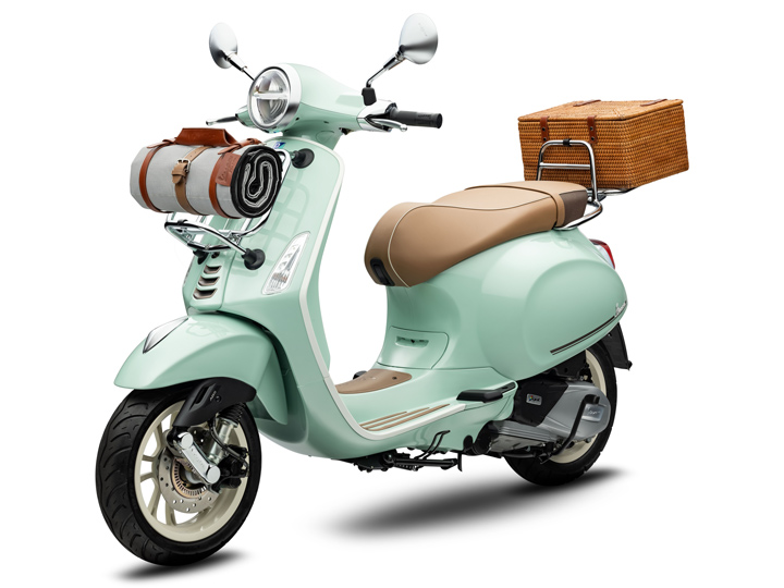 This limited edition comes with its appropriate accessories: A picnic blanket with an embossed Vespa Pic Nic logo; a rattan basket with fixing kit, which allows basket to located firmly on the rear rack; a white cooling bag is inside the basket where food and drinks can be stored once the journey outdoor begins; special Vespa tumblers; a branded fedora hat, a tote bag, and white T-shirt with heritage graphic.