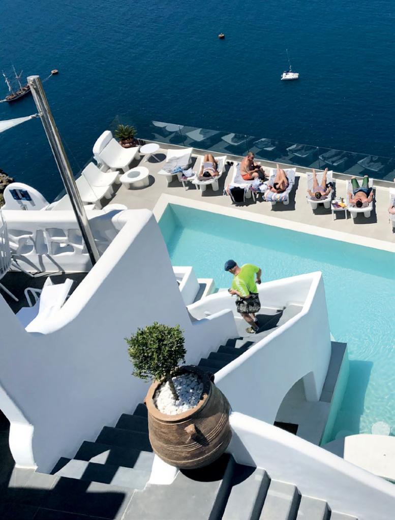 If you prefer to stay at a hotel not far from the action, there is Athina Luxury Suites. The Luxury Travel Group and Haute Grandeur awarded it as the Best Boutique Hotel in Greece. The rooms have a private balcony where you can witness the full view of the Caldera, and breathtaking sunrise and sunset. At breakfast, you can indulge in a healthy variety of waffles, Eggs Benedict, and yogurt with pistachios and honey. While eating, you can enjoy the view of boats docking at the bay to visit the island.