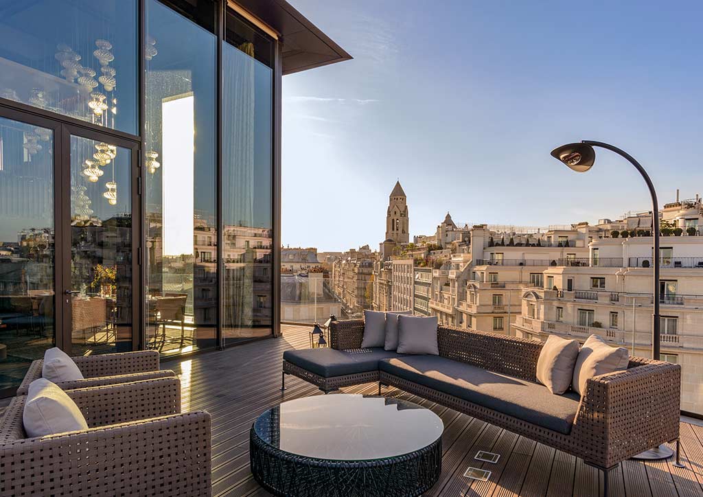The hotel is located in Triangle D’Or (Golden Triangle) in Paris’ 8th Arrondissement, a traditionally high-end neighborhood that features premium brand boutiques and fashion houses.