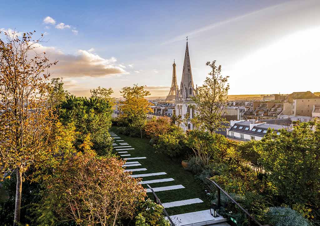 ACPV worked in tandem with the French architectural firm Valode & Pistre. The hotel has 76 rooms and suites, including the Bulgari Penthouse, a private apartment that measures nearly 400 square meters and a 569 square meter panoramic roof garden.
