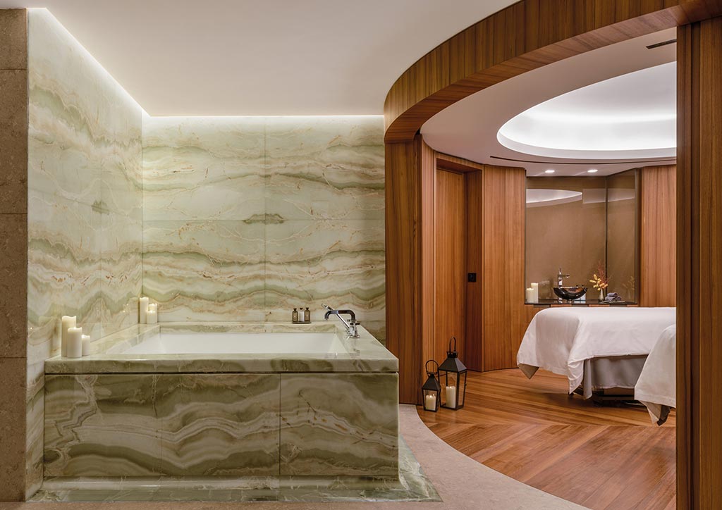 There is also a two-level spa within the hotel, which is a nod to Bulgari’s Roman roots. The Spa is open to both residents and locals. Clad in Pietra di Vicenza and Burmese teak, it is a space entirely devoted to inner and physical well-being, relaxation and sport.