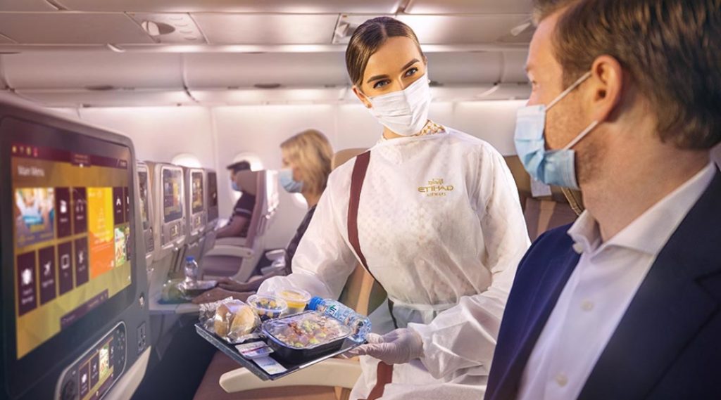 For Etihad, they launched Etihad Wellness, a comprehensive health and hygiene program. Wellness Ambassadors will provide essential travel health information to you and will accompany you to every point of your journey starting at Abu Dhabi airport. They highly encourage applying through the website to reduce contact with staff. Apart from the standard social distancing, provision of wellness kits, and wearing of PPEs of the cabin crew, Etihad implemented a self-service health check-in that reads your temperature, heart rate, and respiratory system. They also have thermal cameras in Abu Dhabi airport and APT surface swab technology that measures levels of virus and bacteria in their airport and aircraft. For meals, you will get single trays with additional dining offerings. They temporarily suspended Dine on Demand option for business class passengers, but you can still avail of their All Day Dining service.